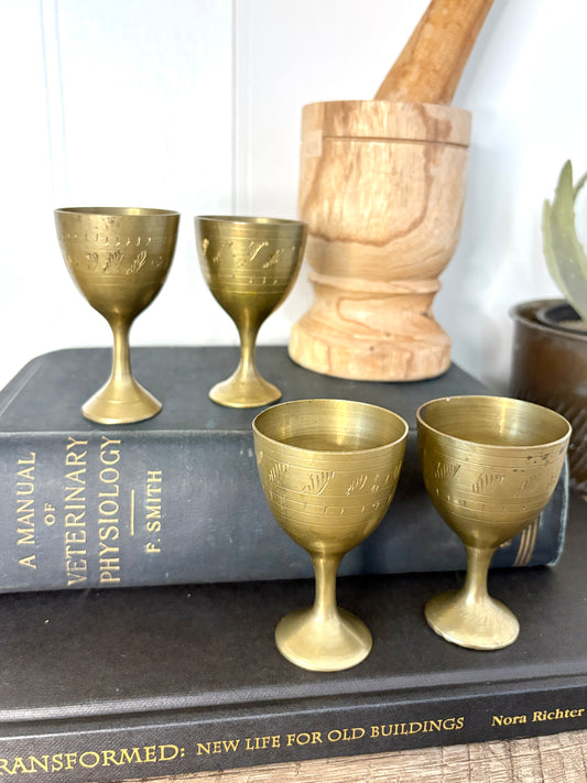Set of 4 Etched Brass Shot Cups – Vintage-Inspired Barware