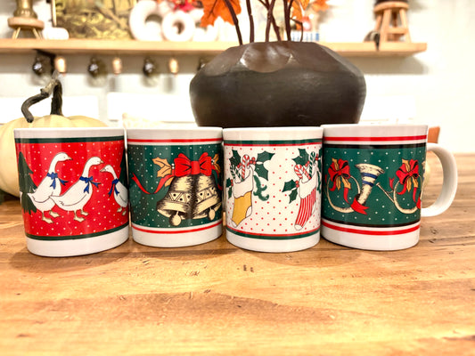 Vintage Coffee Mugs (Set of 4) Retro Ceramic | Holiday Mugs | Rustic Kitchen Decor | Gift for Coffee Lovers
