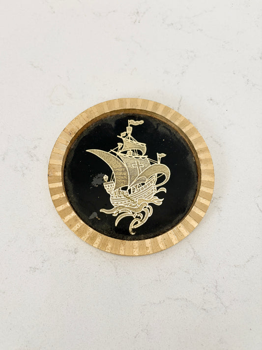 Pair of Vintage Diamond Cut Nautical Coasters – Ship Design (Circa 1968)