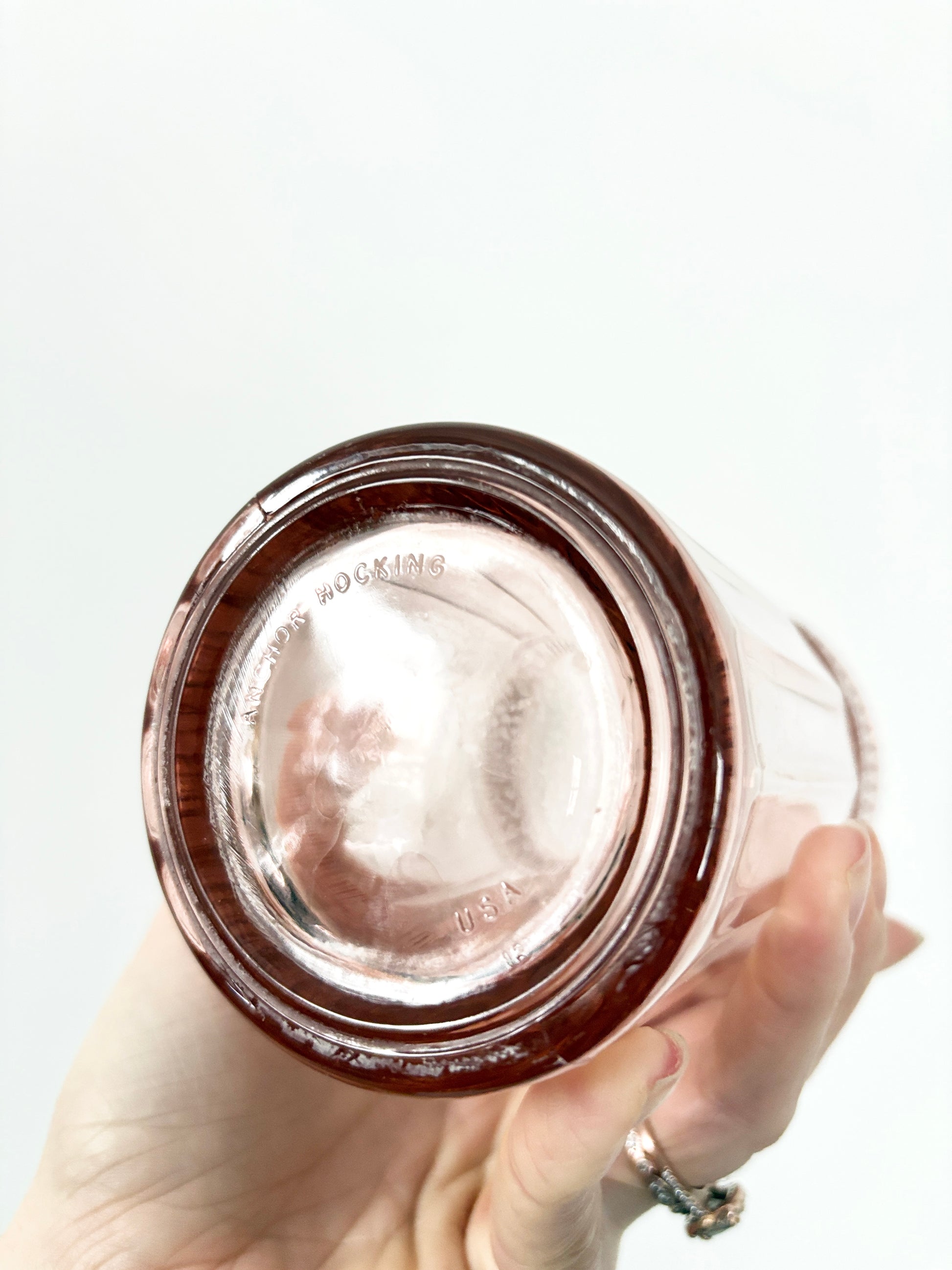 Bring timeless elegance to your table with this beautiful set of 4 Anchor Hocking Annapolis Rosewater Pink Iced Tea Glasses. Crafted in a soft, translucent rosewater pink, these vintage flat iced tea tumblers showcase Anchor Hocking’s classic Annapolis pattern, known for its clean lines and refined mid-century charm.