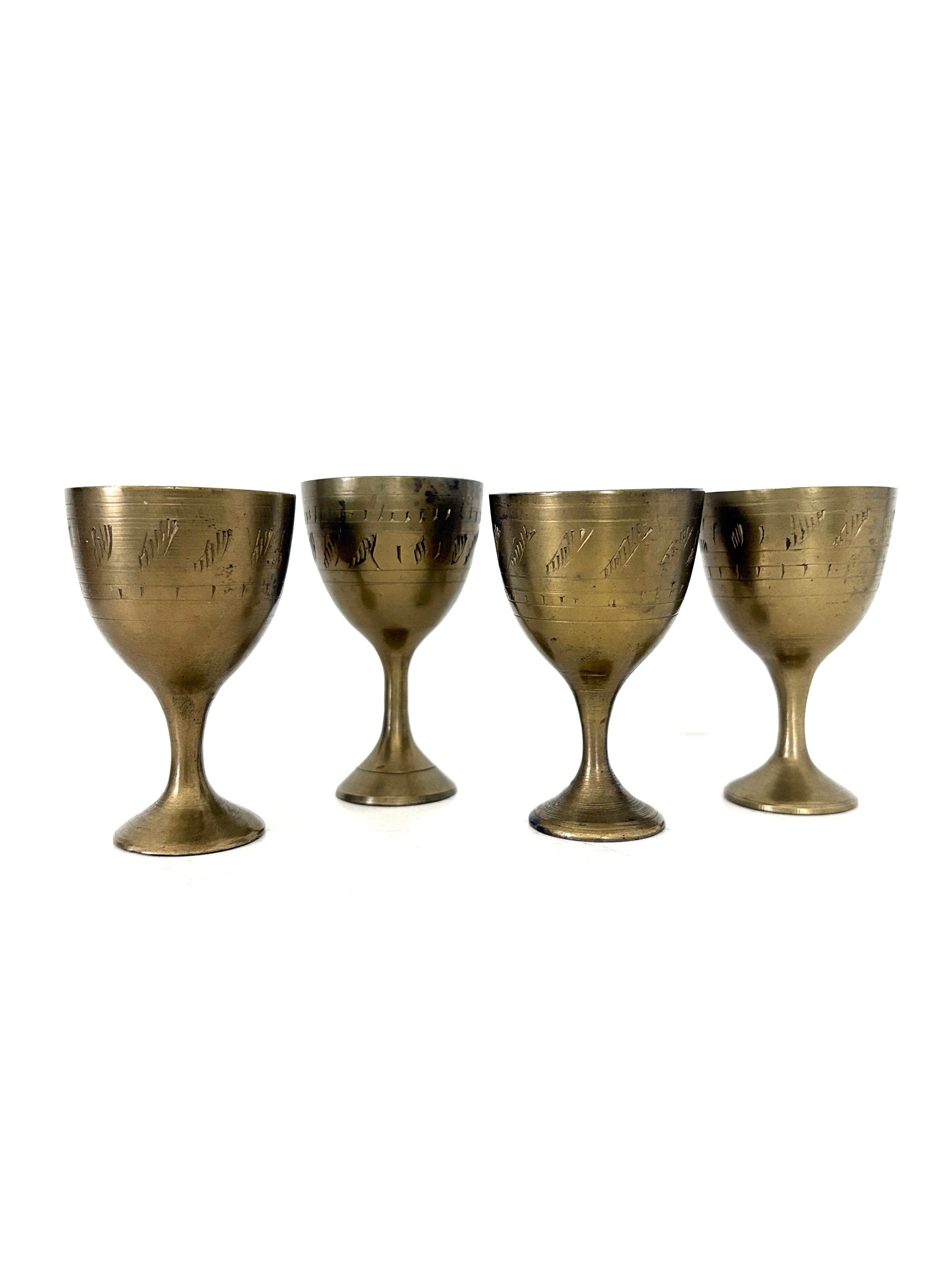 Set of 4 Etched Brass Shot Cups – Vintage-Inspired Barware