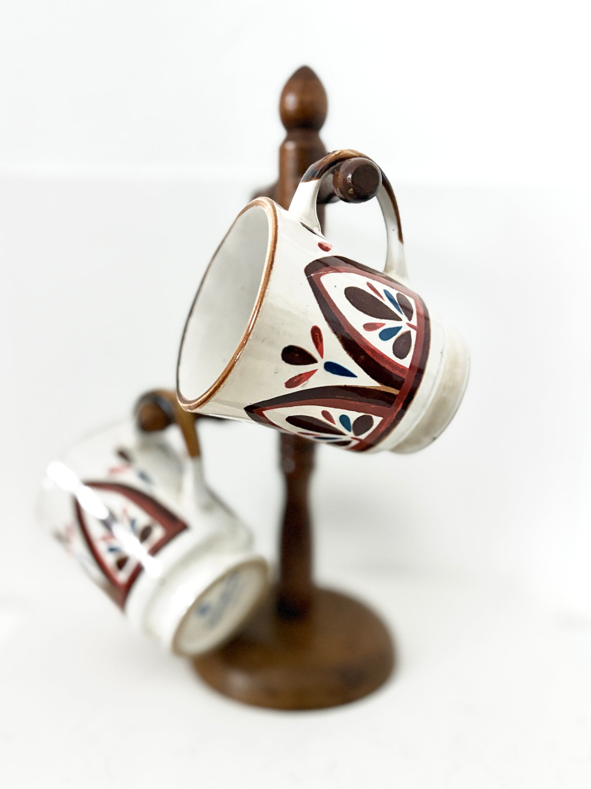 Vintage 1980s JMP Casualstone Brown Blue Tan Coffee Mug Pair
